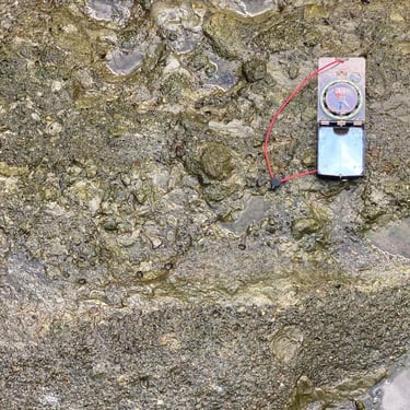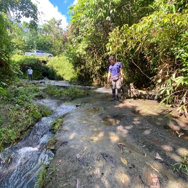Geological site investigation in a creek located in Brgy. Busay, Barugo, Leyte showing the contact boundary between the conglomerate and sandstone which belongs to the Late Miocene-Pliocene Bagahupi Formation.
