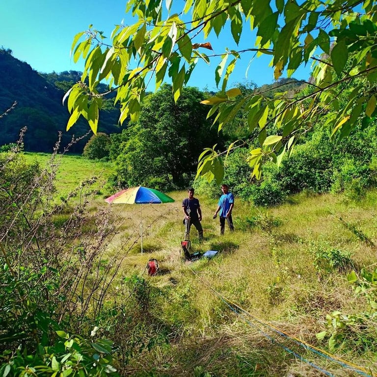 Conducting Vertical Electrical Sounding (VES) survey in a predominantly ultramafic area, in search for groundwater. The survey was done under a very windy conditions in Pagudpud, Ilocos Norte.