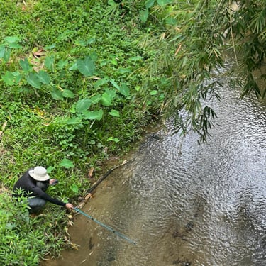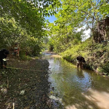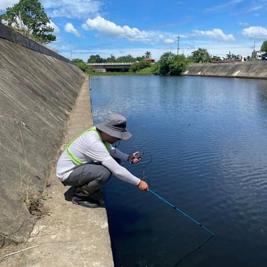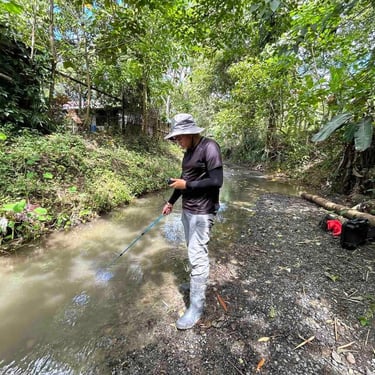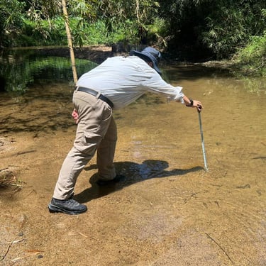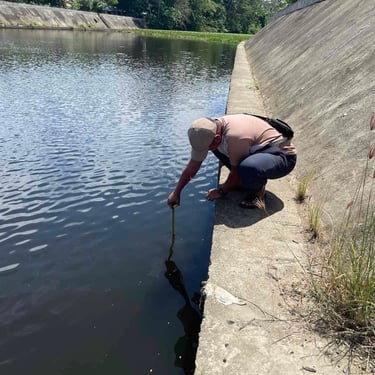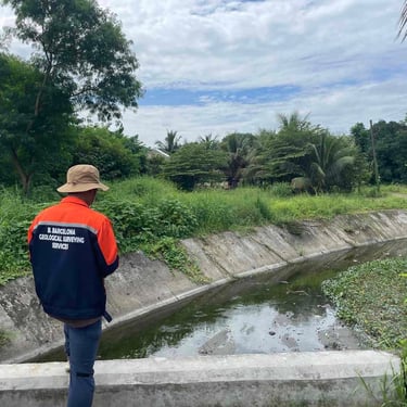 Conducting a hydrological survey for flood potential assessment in Anuy, Iloilo Province, for a photovoltaic power project. Hydrological/flood studies are important for solar power, construction, and hydropower projects.